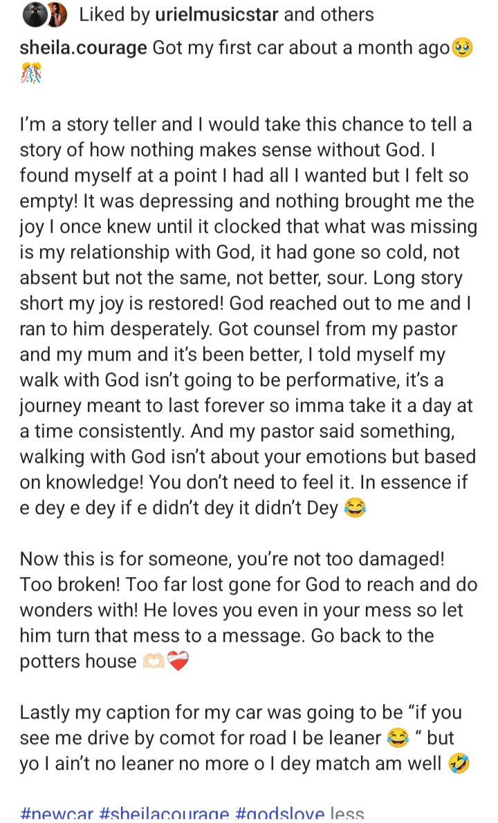 Lastly my caption for my car was going to be “if you see me drive by comot for road I be leaner” but yo I ain’t no leaner no more o I dey match am well”