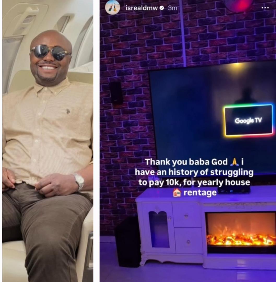 In a post shared on social media this afternoon, Isreal showed off his well-furnished house as he reflected on a time in his life when he struggled to pay 10k rent