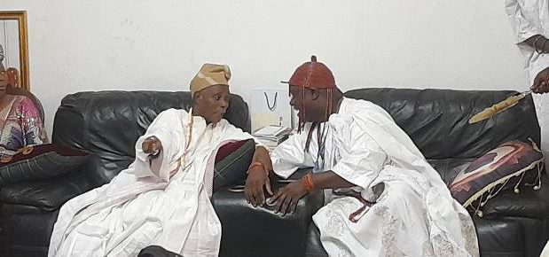 The Ooni of Ife, Oba Enitan Ogunwusi, on Sunday visited the Olubadan-designate, Rashidi Ladoja, at his private residence in Bodija, Ibadan.