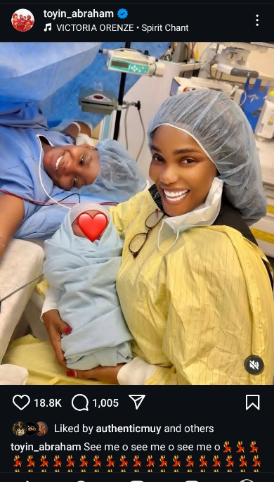 The post, which coincided with Funke Akindele’s48th birthday, featured a photo of Iyabo Ojo, Priscilla, and the newborn in the delivery room.
