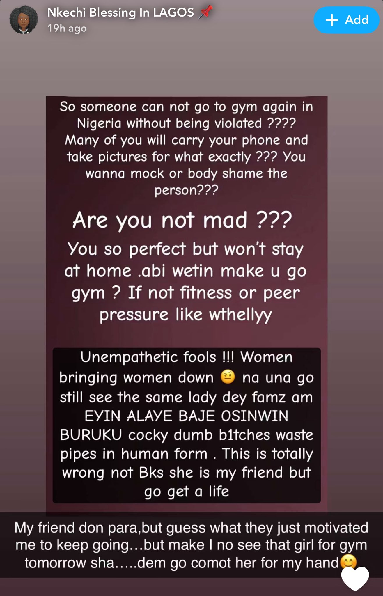 He wrote, “Beautiful Nkechi Blessing, you are beautiful! Never let anyone say otherwise to you. Many of us still love you regardless of how you look. Another day, another reason why I left Nigeria… some of them are too toxic and fake.