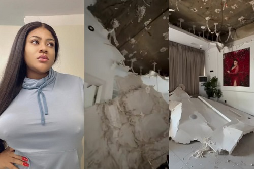 Popular actress Nkechi Blessing escapes unscathed after the POP ceiling in her Lekki home collapsed.