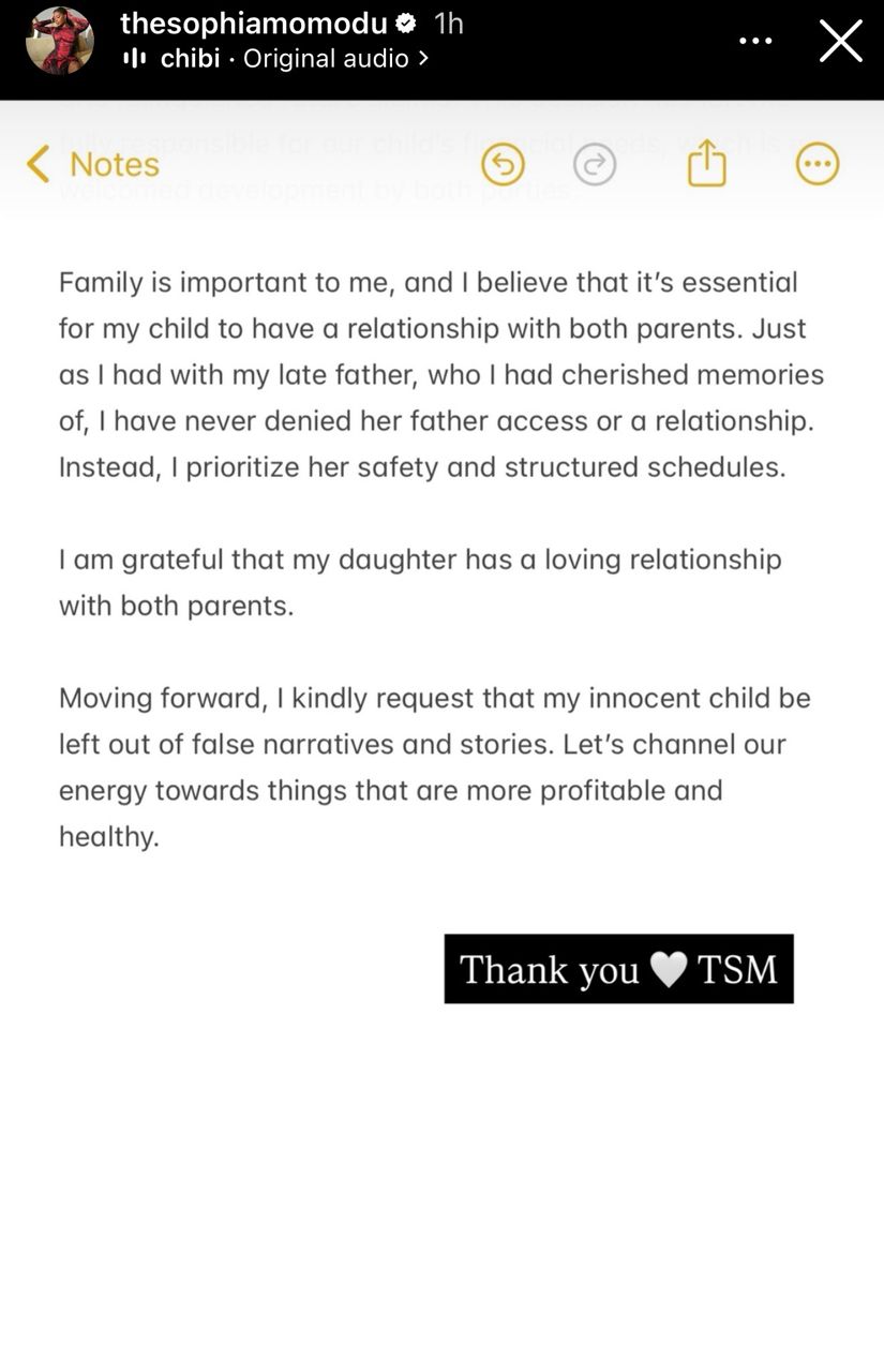 “Legal counsel was sought in February 2023, resulting in David’s father, Mr Adedeji Adeleke, eventually paying the outstanding fees. Regardless of this neglect Sophia strongly maintains that the most important support David can provide to their daughter is his presence and emotional support.