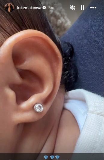 She was seen holding Toke’s baby while her son, Jamil also didn’t miss in the action.